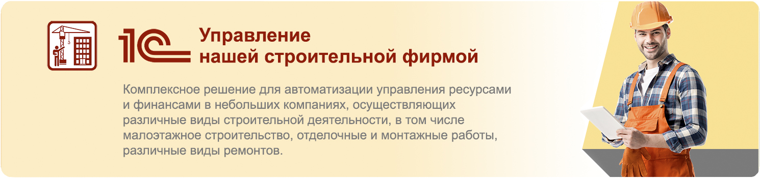 Тариф «1С:Управление нашей строительной фирмой» на 12 месяцев со скидкой 30 % (при открытии счета в банке Точка)