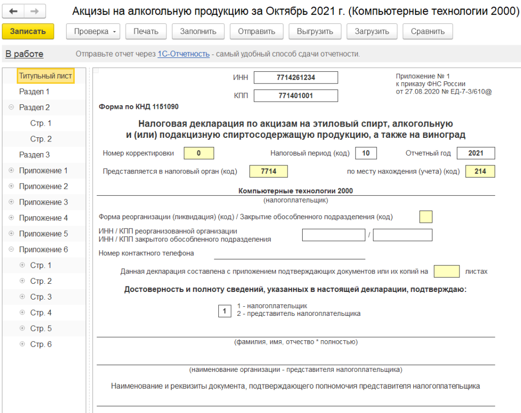 Реализовано автозаполнение «Декларации по акцизам на этиловый спирт, алкогольную и (или) подакцизную спиртосодержащую продукцию».