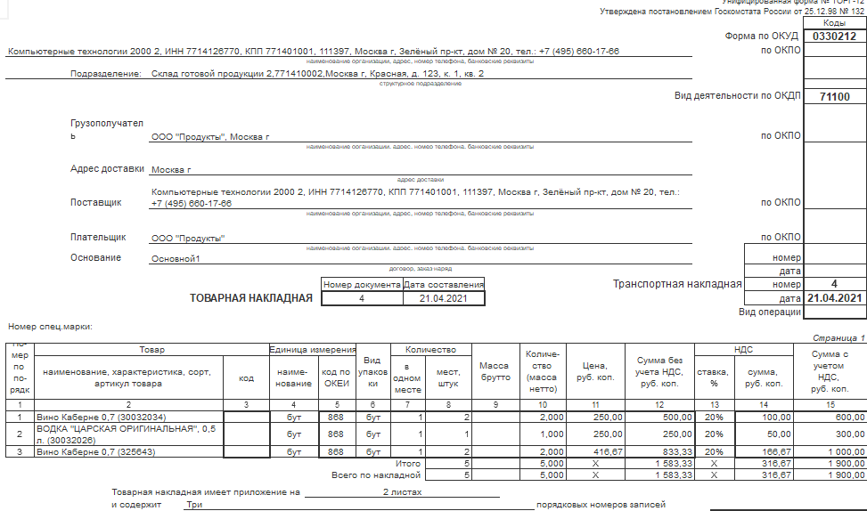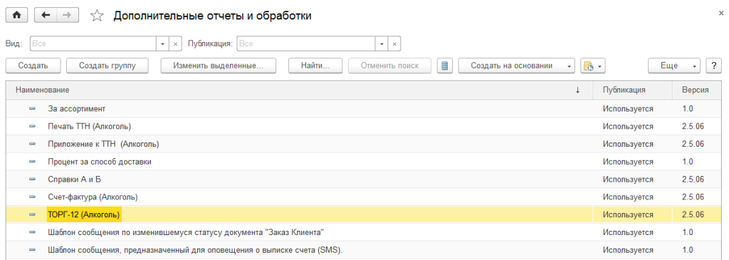Для печати сопроводительных документов разработаны внешние печатные формы: Печать ТТН (Алкоголь), Справки А и Б, Торг-12 (Алкоголь), Счет-фактура (Алкоголь), Приложение к ТТН (Алкоголь).
