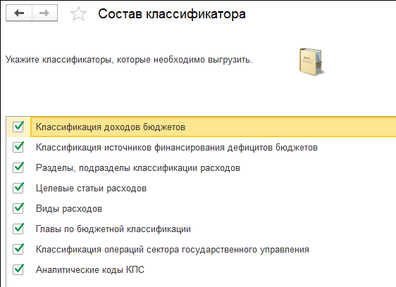 Выгрузка классификаторов выполняется с помощью простого в использовании помощника: