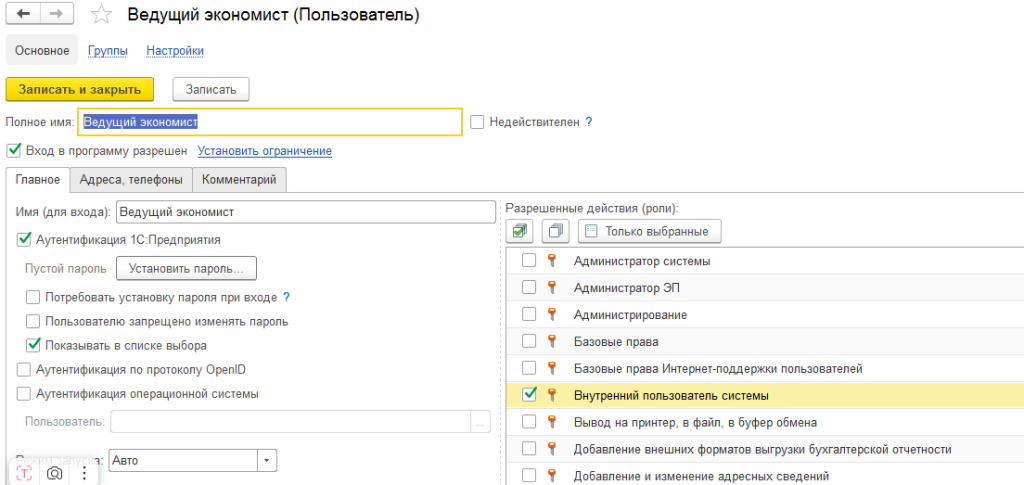 В программе «1С:Бюджетная отчетность 8» предусмотрено ограничение прав доступа пользователей как на уровне отдельных объектов базы данных, так и на уровне отдельных записей базы данных.
