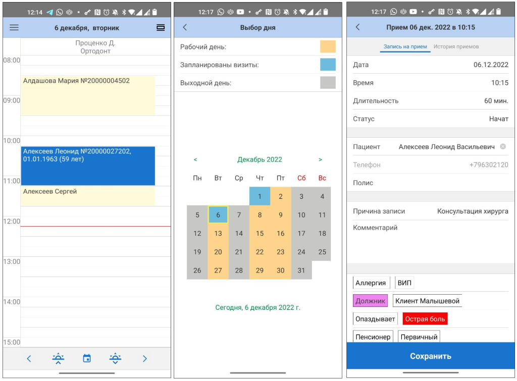 Мобильное приложение (Google Play, App Store) на мобильной платформе «1С:Предприятие 8» позволяет сократить затраты на автоматизацию и использовать в работе смартфон или планшет. Для врача доступен журнал его записей, график работы и история приёмов пациентов.