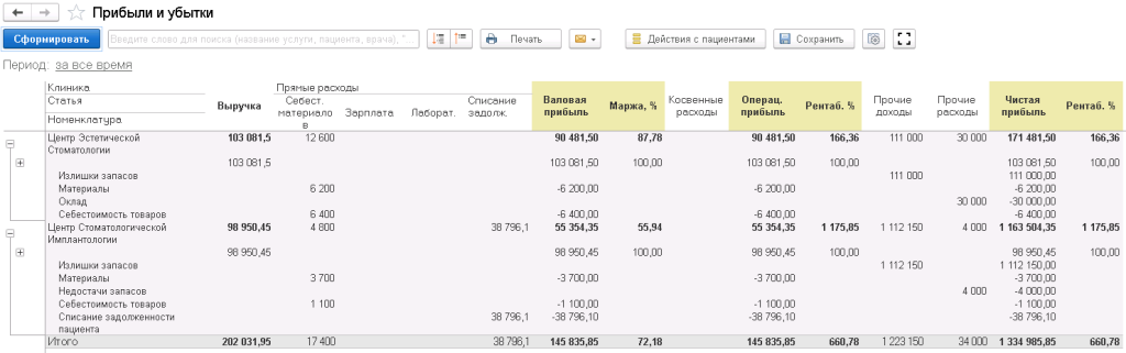 - Отчеты по пациентам (продажи, анализ источников привлечения пациентов, взаиморасчеты с пациентами, средний чек и другие отчеты).