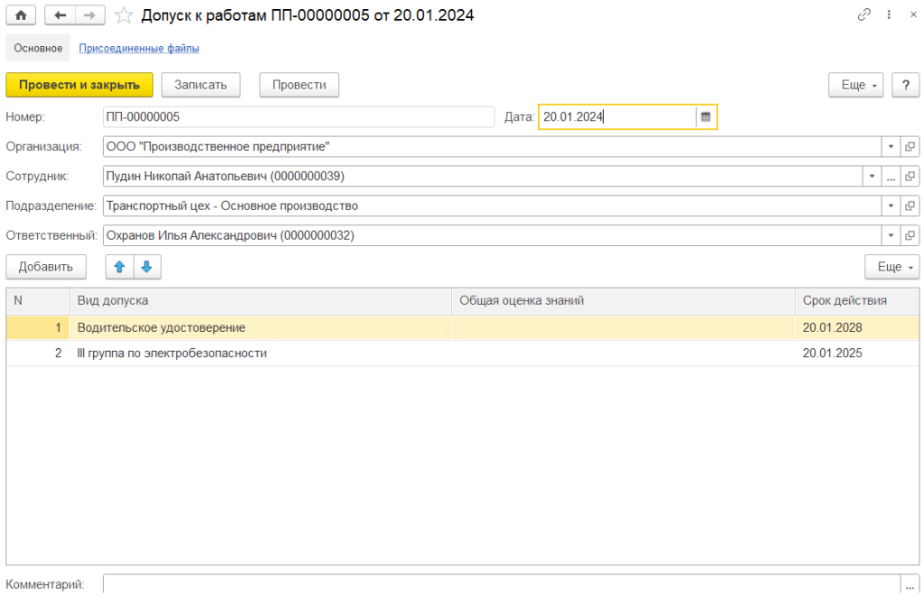 Раздел «Наряды-допуски» предназначен для ведения учета допусков сотрудников к работам повышенной опасности:
