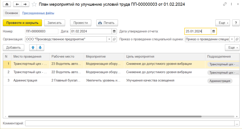 По результатам проведения специальной оценки условий труда, формируется рекомендованный перечень мероприятий по улучшению условий труда на рабочих местах, которые прошли специальную оценку.