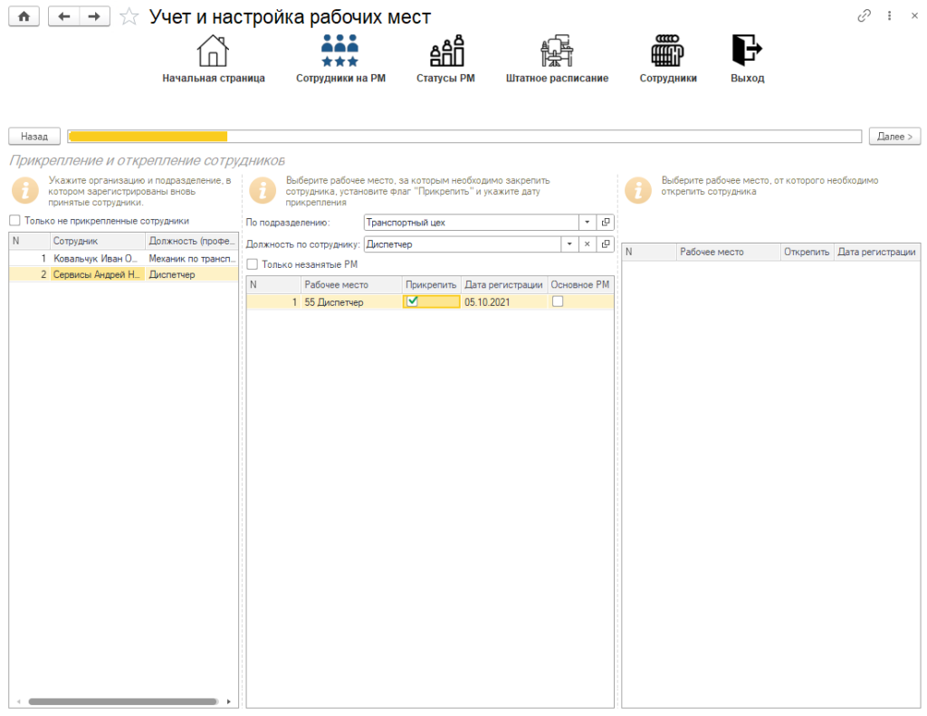 Мастер прикрепления/открепления сотрудников к рабочим местам