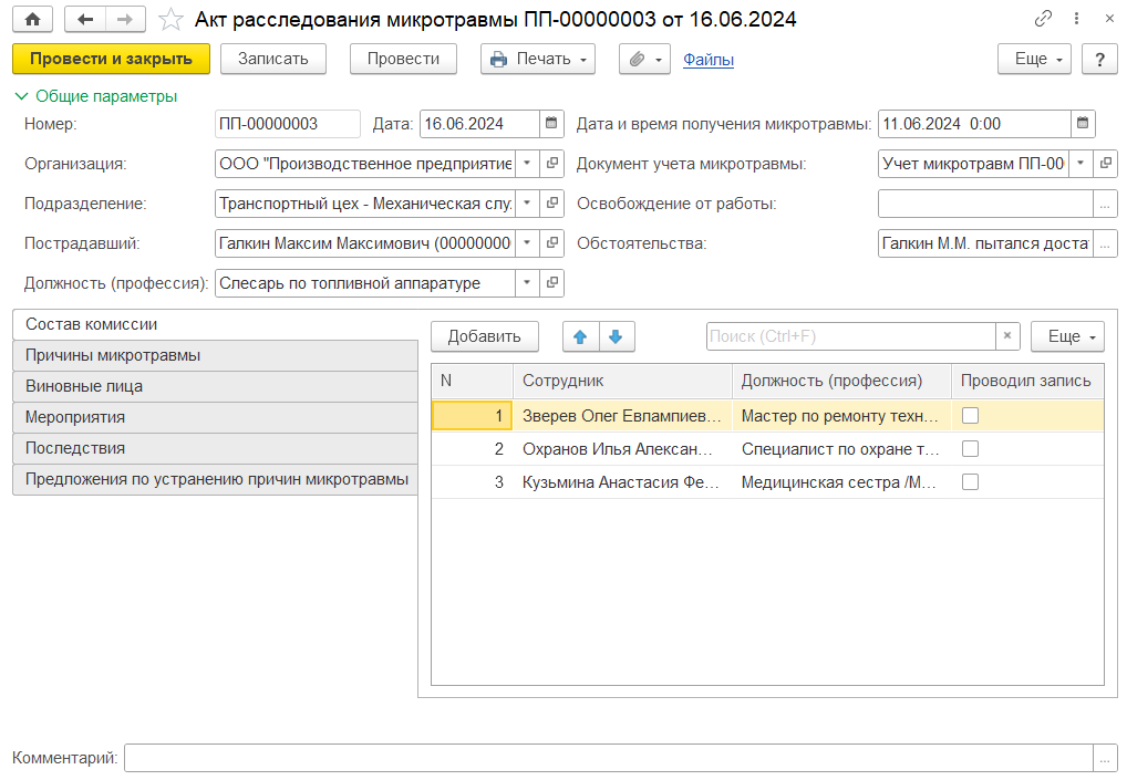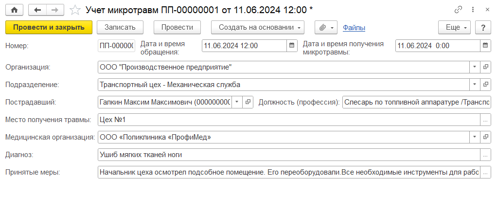 Система позволяет вести учет сведений по возникшим микротравмам на предприятии.