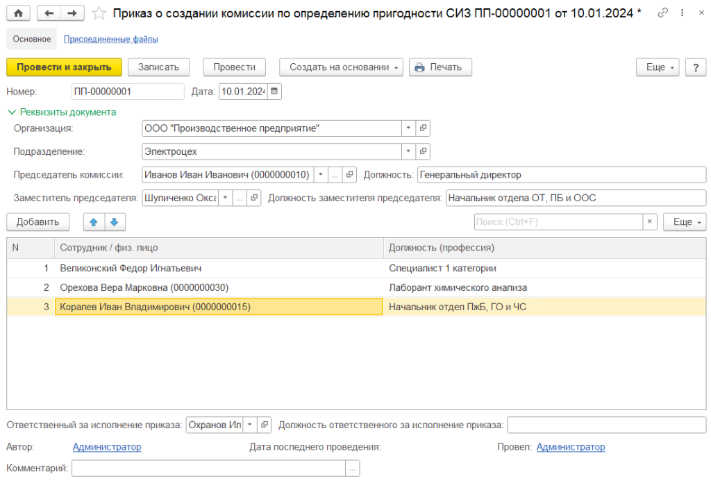Приказ о создании комиссии по определению пригодности СИЗ: