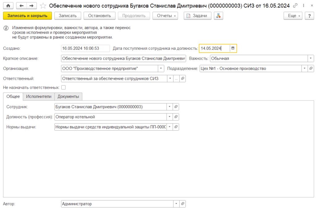 При поступлении нового сотрудника на работу, важно оперативно обеспечить его необходимыми средствами защиты, положенными ему, согласно установленным нормам выдачи на предприятии. Процессный подход позволяет четко распределить задачи по ответственным за планирование, а также выдачу средств защиты.