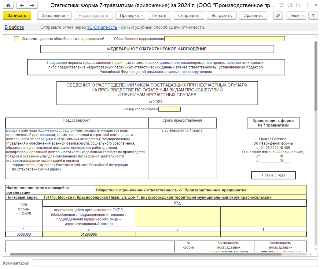 Регламентированный отчет Приложение к форме № 7-травматизм: