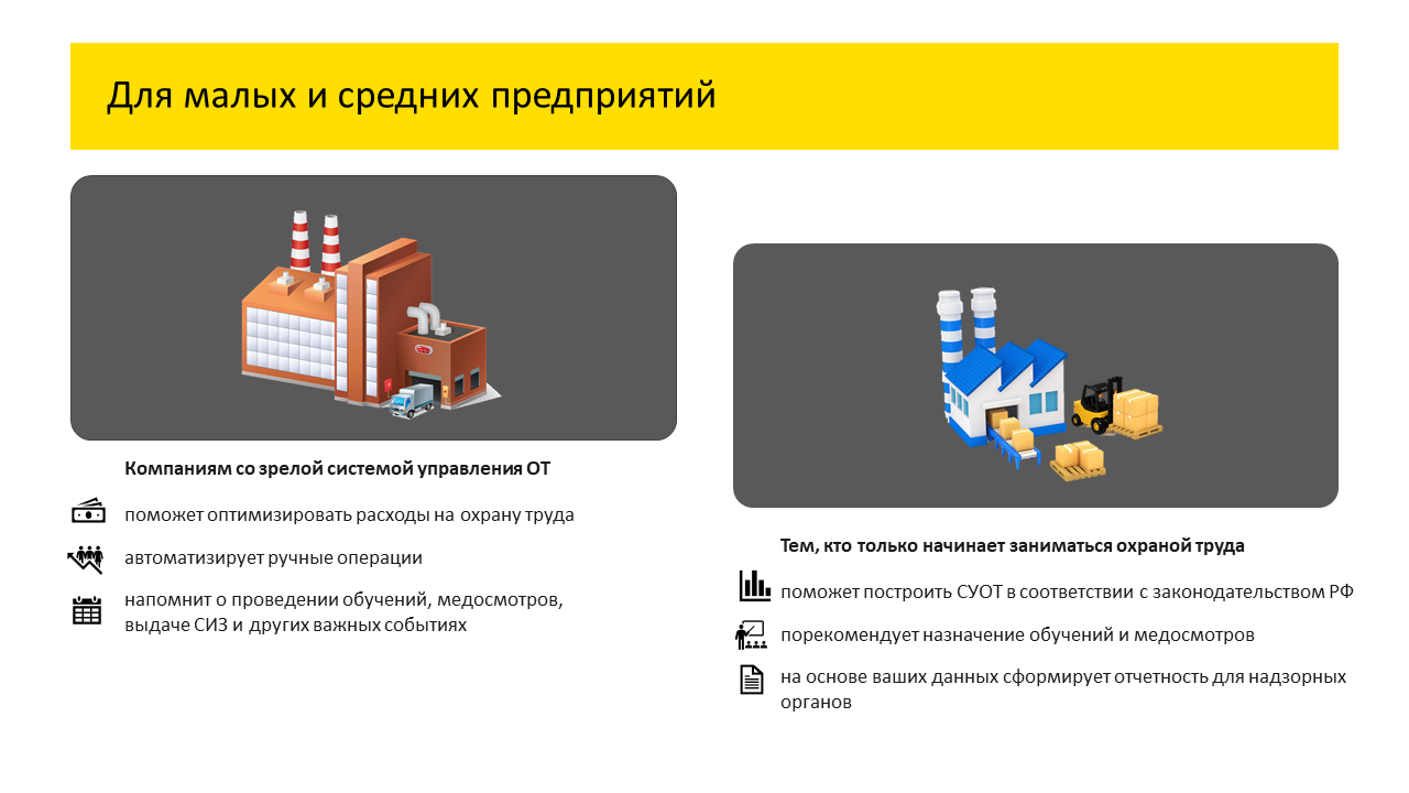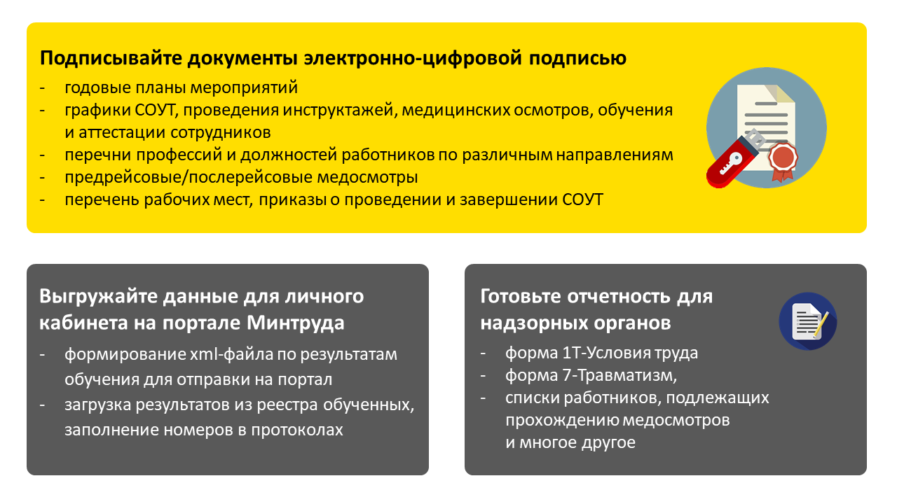 Помимо автономной работы возможно использование совместно с программами «1С:Производственная безопасность»: