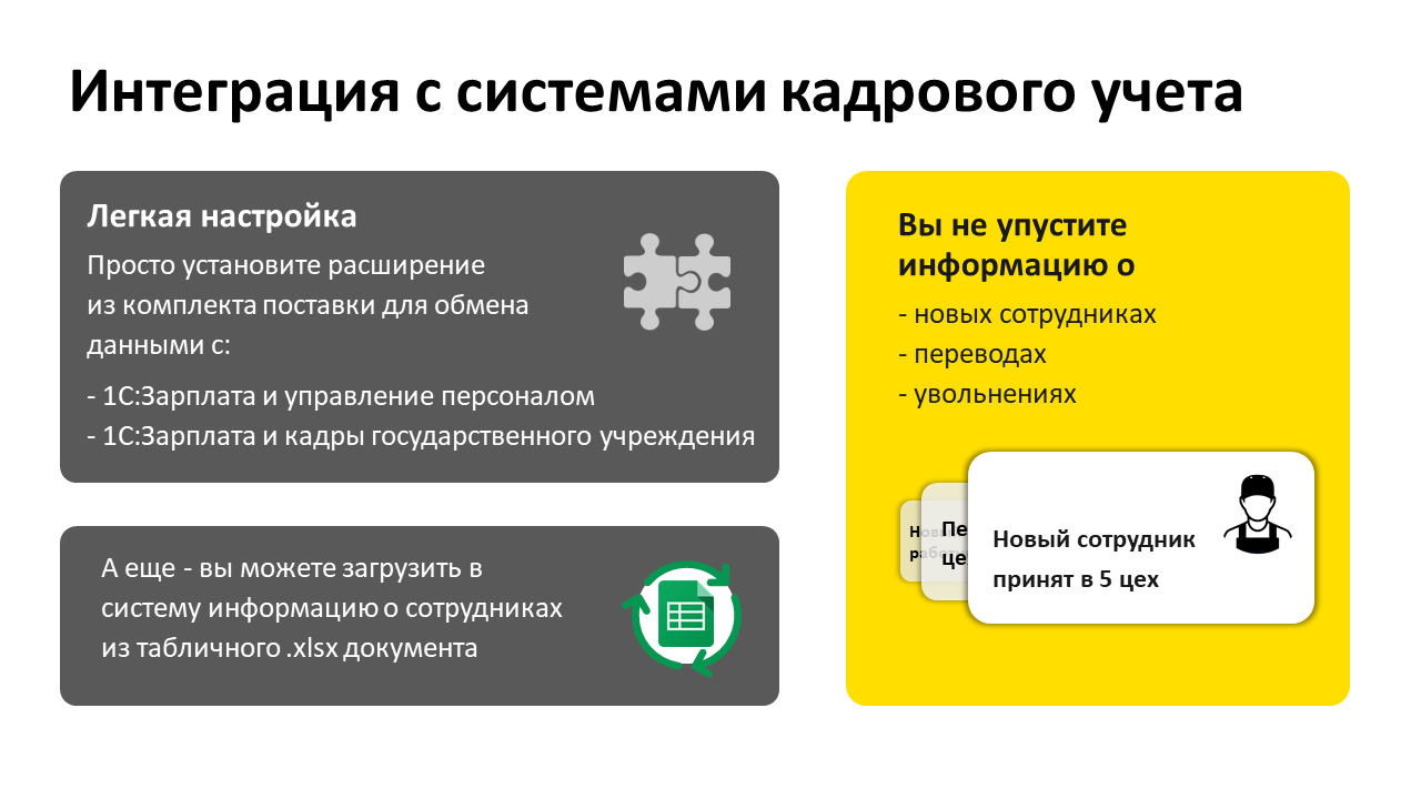 Синхронизация данных о структуре и сотрудниках предприятия реализована для следующих смежных систем: