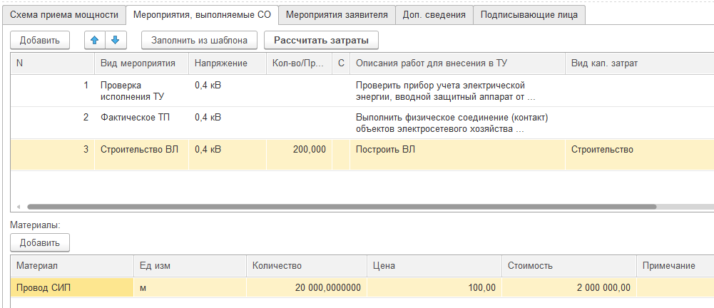 На основании введенных мероприятий, выполняемых сетевой организацией, производится автоматический расчет платы за ТП в 2-х вариантах: стандартизированная ставка и ставка за единицу максимальной мощности.