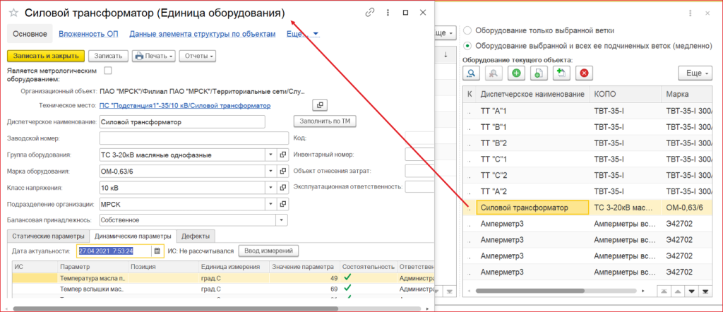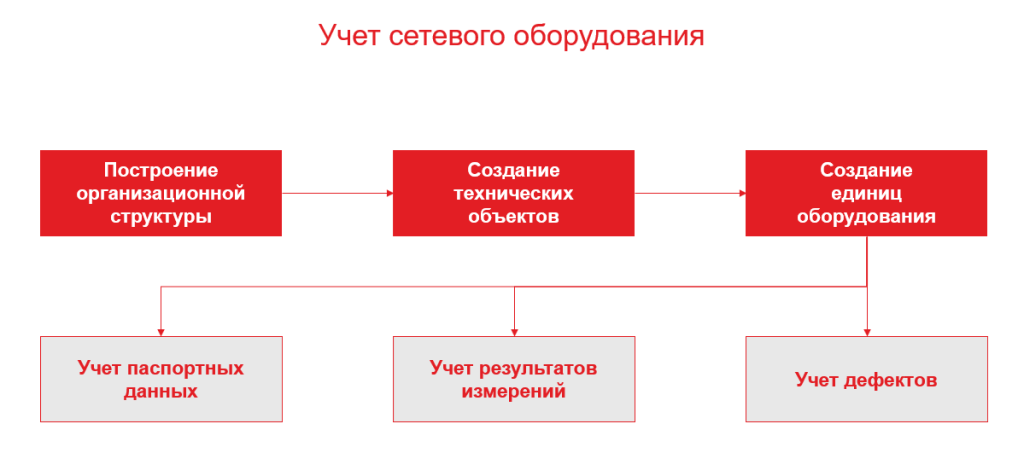 Подсистема «Учет сетевого оборудования» позволяет службам эксплуатации оборудования формировать и вести единую базу электросетевого оборудования, формировать иерархическую структуру подключения, регистрировать паспортные характеристики оборудования, учитывать результаты испытаний и осмотров оборудования.