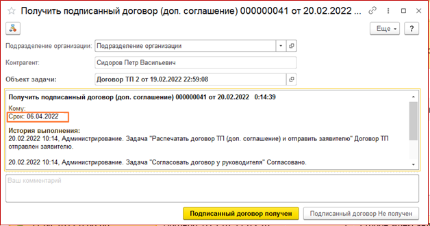 Контроль заключения договора с потребителем осуществляется автоматически, если установлен срок исполнения задачи. Подсистема автоматически аннулирует заявки, по которым договор не предоставлен в срок.