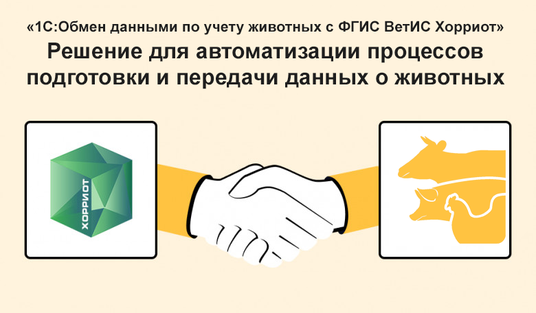 - «1С:Предпр.8. Обмен данными по учету животных с ФГИС ВетИС Хорриот.» — самостоятельное оригинальное решение, разработанное на технологической платформе «1С:Предприятие 8».
