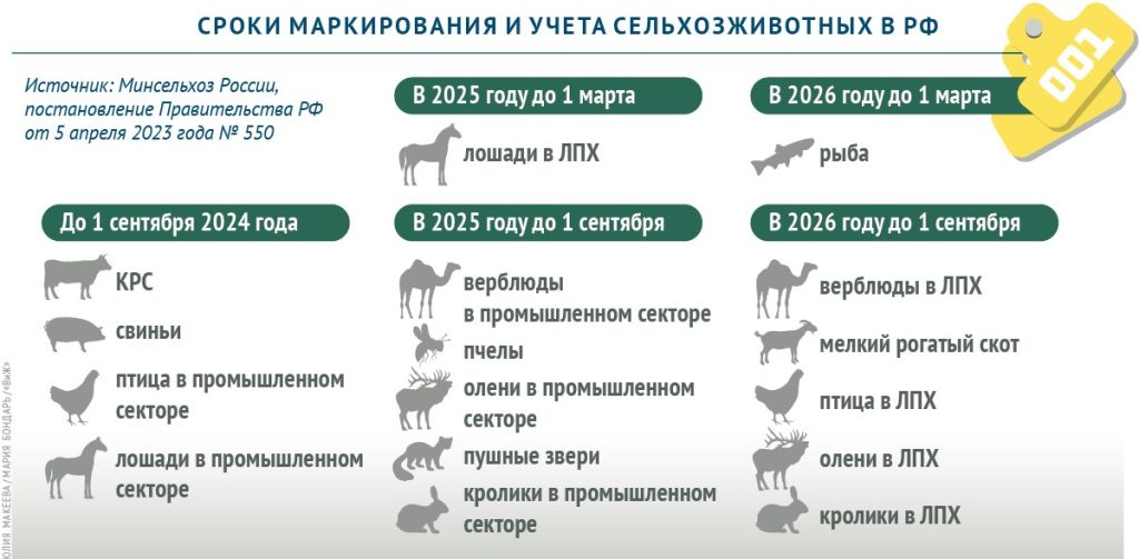 С 1 марта 2024 года вступило в силу «Постановление Правительства РФ» от 5 апреля 2023 г. №550, устанавливающее порядок учета животных, перечень видов животных, подлежащих индивидуальному или групповому учету, случаев осуществления индивидуального или группового маркирования и учета животных, а также сроков осуществления учета животных.