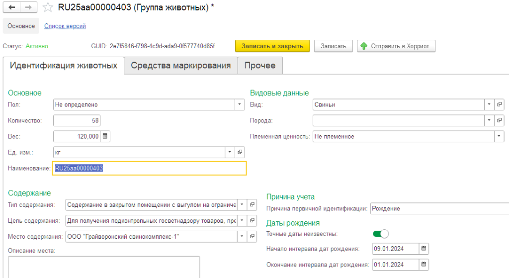 - Автоматизация процесса присвоения уникальных номеров животным и их группам в соответствии с утвержденными ветеринарными правилами маркирования и учета животных;