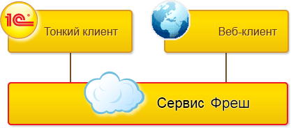 Сервис по облачной технологии Фреш можно развернуть на одном компьютере. В составе продукта фирмы 1С «1С:Предприятие 8. Облачная подсистема Фреш» содержатся: