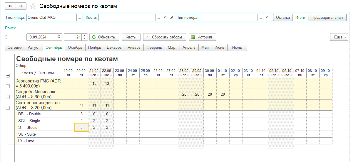 Управление загрузкой и квотами номеров. Использование механизма квот позволяет выделить часть номерного фонда гостиницы в распоряжение агента (туроператора). При этом номера, выделенные в квоту, можно снять с продажи и заселять в эти номера гостей только по заявкам агента. Система позволяет создавать «мягкие» и «жесткие» квоты. Дата освобождения квоты контролируется автоматически, что повышает возможность продать номер напрямую.