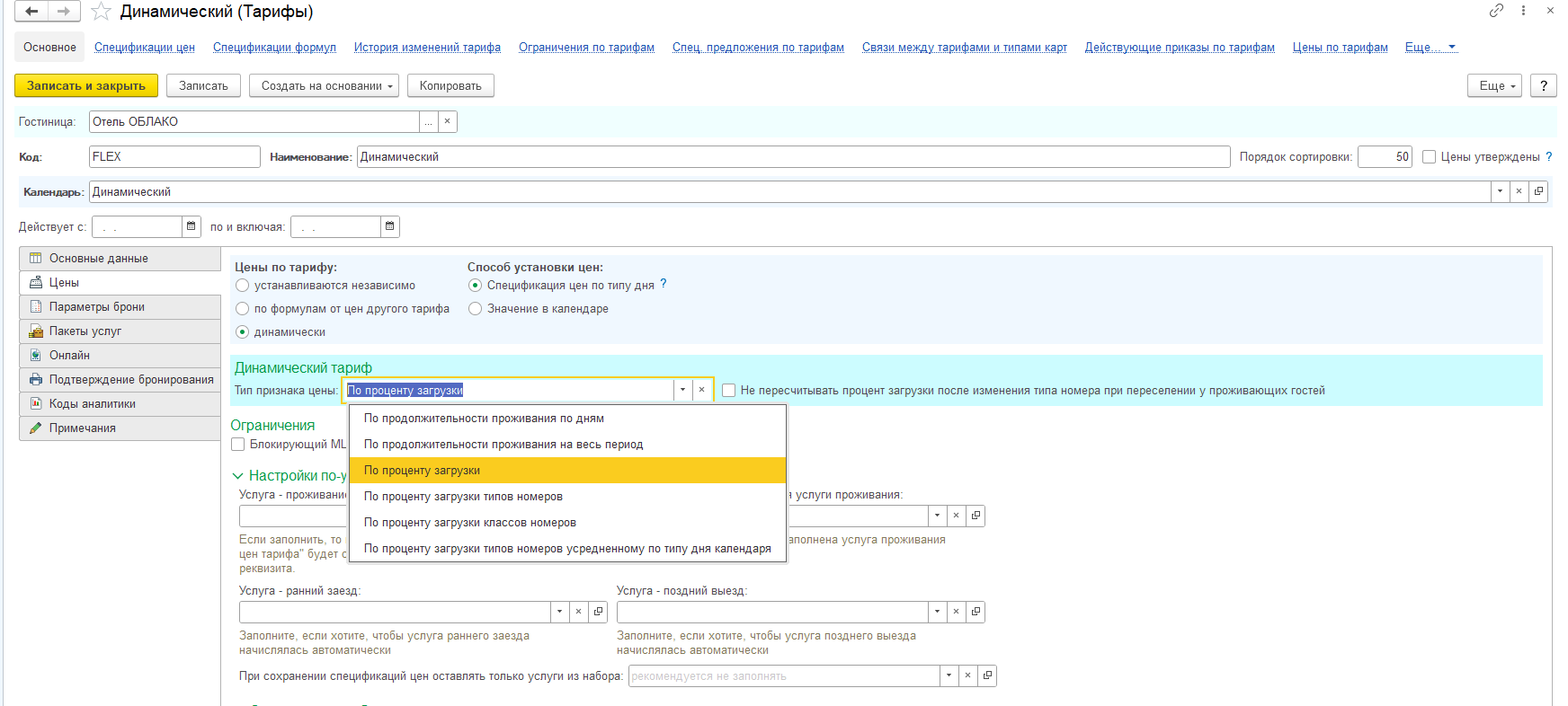 Динамические тарифы. Система поддерживает создание динамических тарифов с автоматическим изменением цены в зависимости от % загрузки отеля или номеров определенной категории, длительности периода размещения или иных настраиваемых факторов.