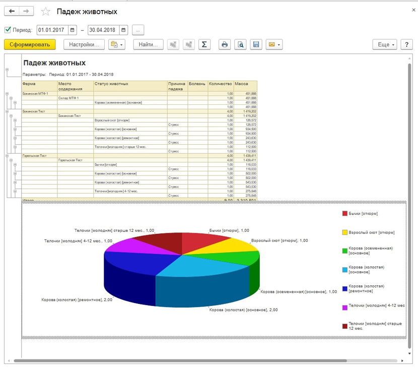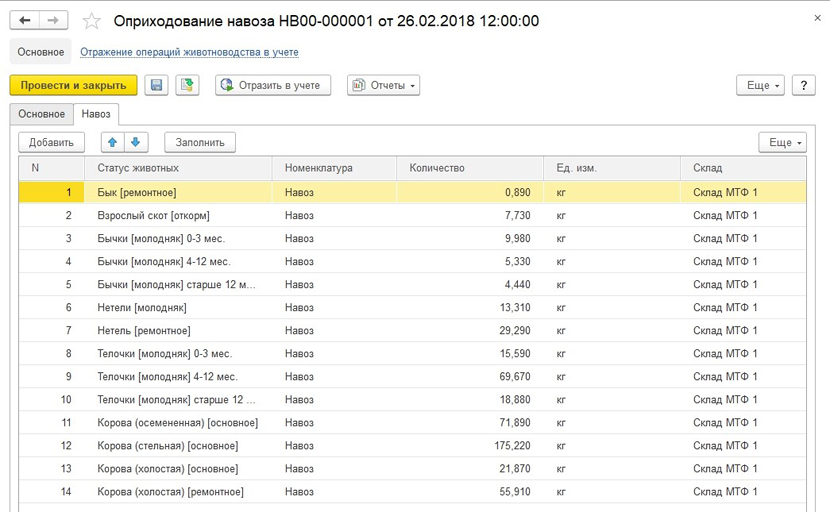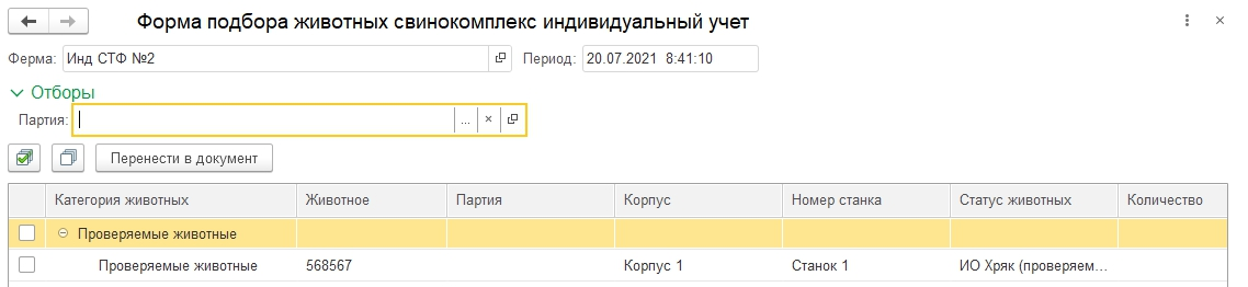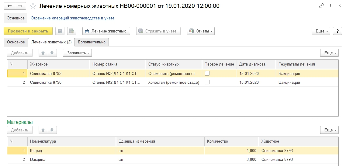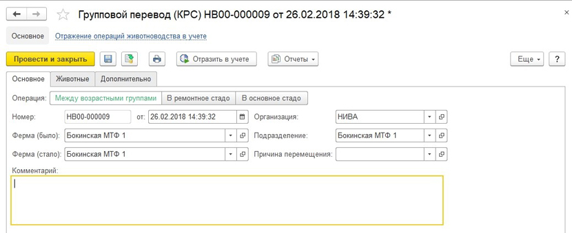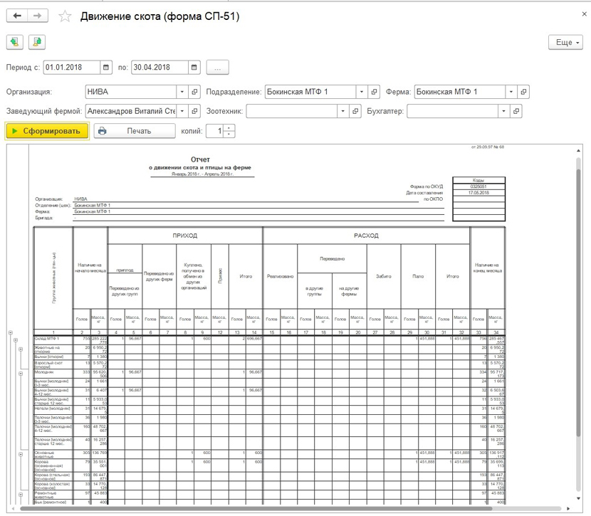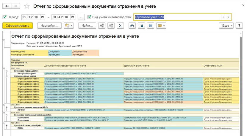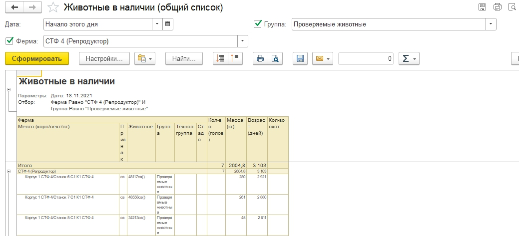 Примеры документов и отчетов подсистемы «Производственный учет на свинокомплексе»: