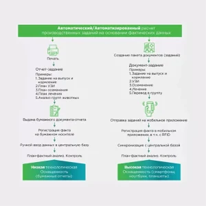 Автоматизация процессов планирования и создания производственных заданий на проведение зоотехнических, ветеринарных и иных мероприятий, кормления и ухода за животными; |