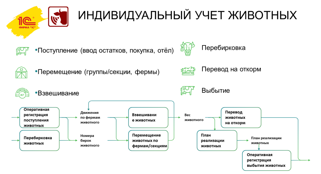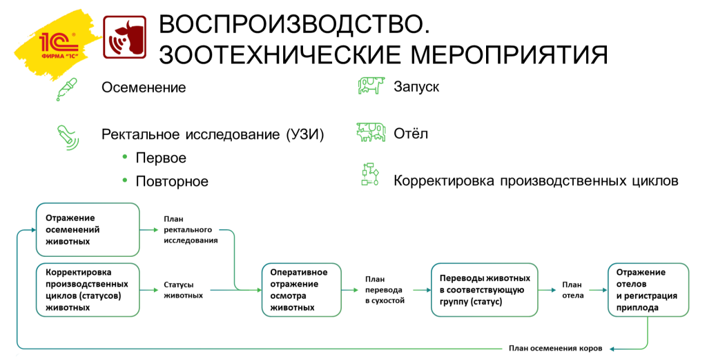 Основные отраслевые бизнес-задачи, которые помогает решить «1С:Цифровое животноводство. Оперативный учет и управление производством. КРС»: