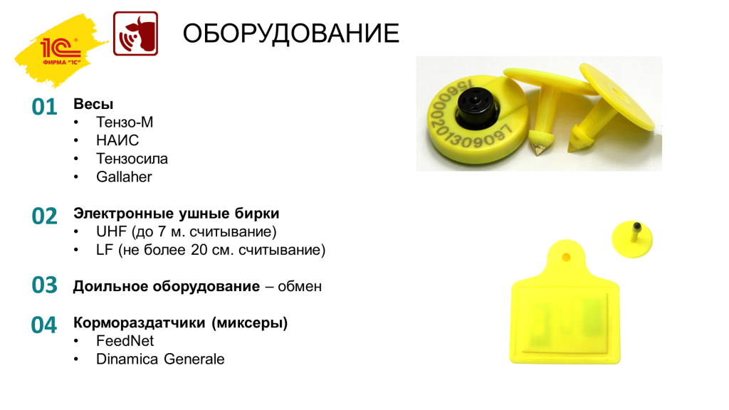 Решение позволяет настроить интеграцию с наиболее важным и распространенным оборудованием, которое используется на животноводческих предприятиях: