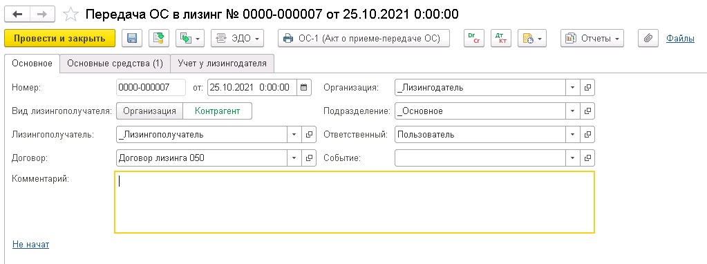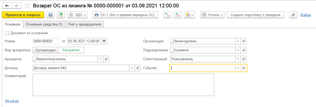 - событий по смене лизингополучателя (с отражением изменений в регламентированном учете).
