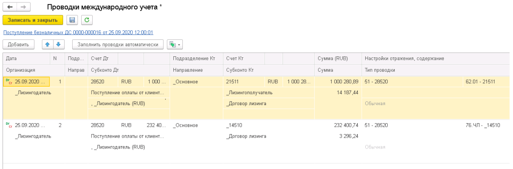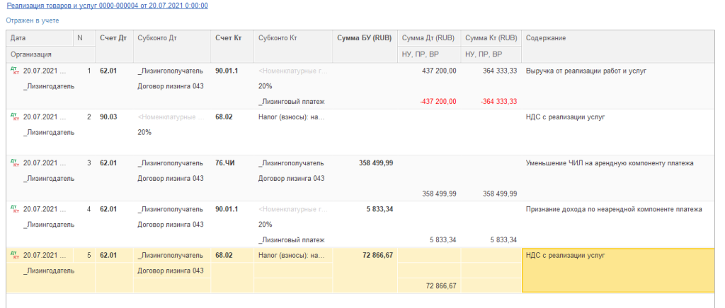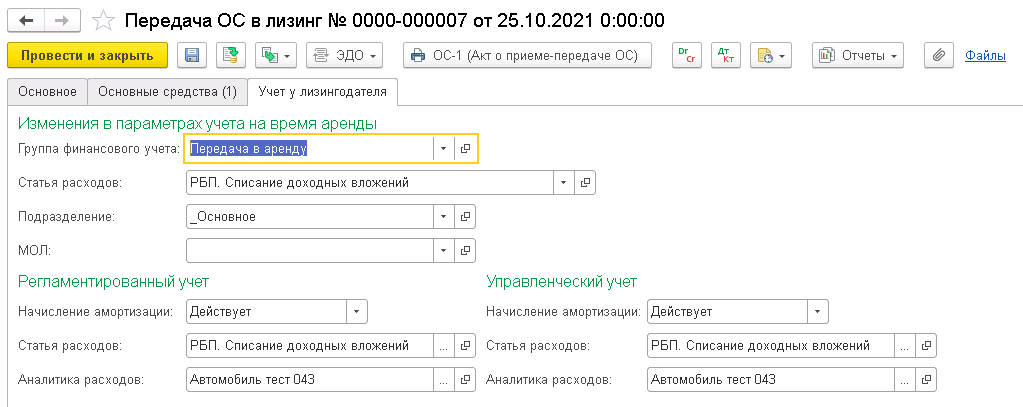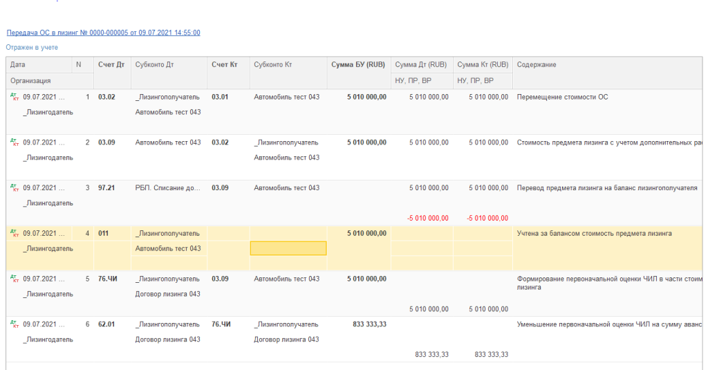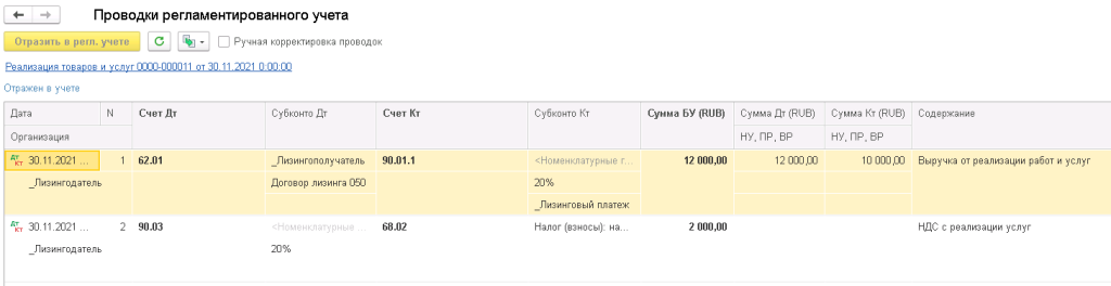 Операции по договорам лизинга (начисление лизинговых услуг, учет авансов, операции смены лизингополучателя, схемы по договорам с учётом на балансе лизингополучателя) отражаются в регламентированном учете.