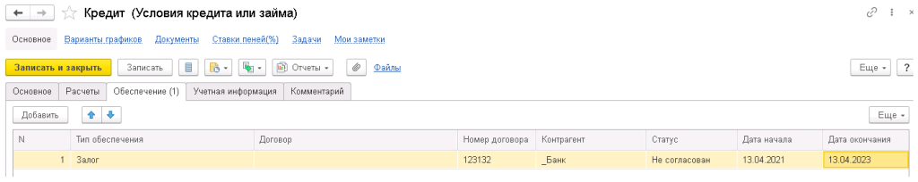 - учет кредитных линий и траншей с их историей изменения.