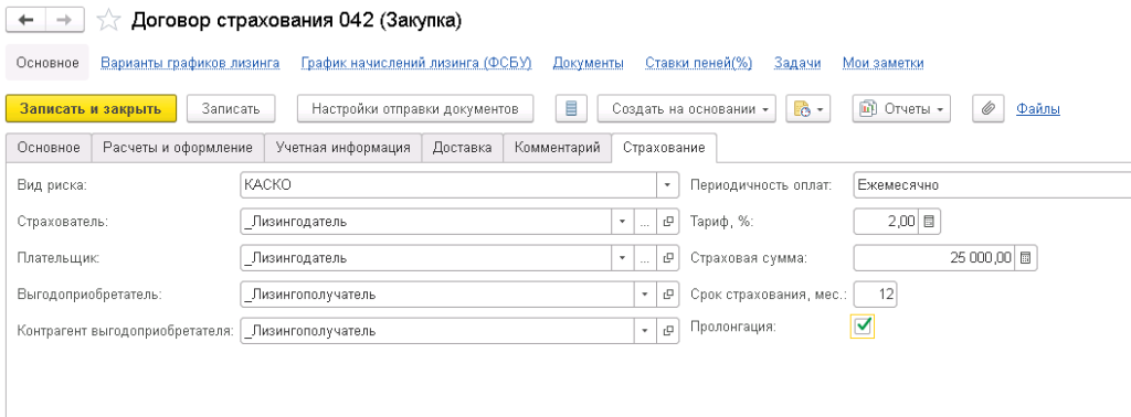Учет операций страхования предметов лизинга