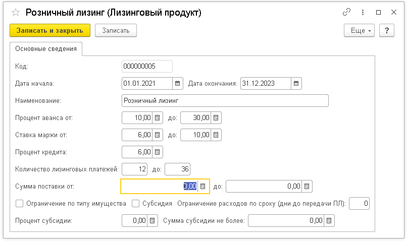 - создание шаблонов с типовыми параметрами и условиями сделок для лизинговых продуктов;