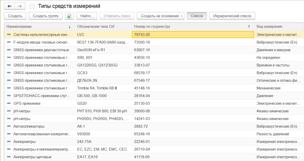 - Учет видов метрологического оборудования: средства измерений, измерительные каналы, измерительные системы, государственные стандартные образцы, испытательное и вспомогательное оборудование, эталоны, индикаторы;