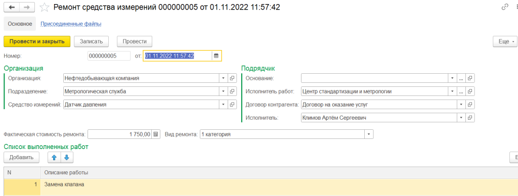 - Учет контрагентов, выполняющих метрологические работы, учет договоров контрагентов;