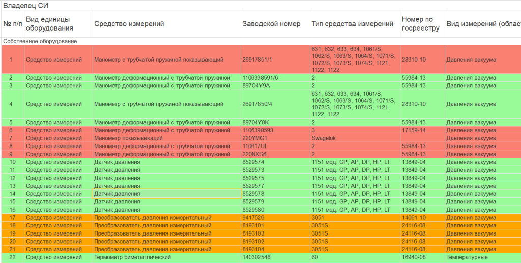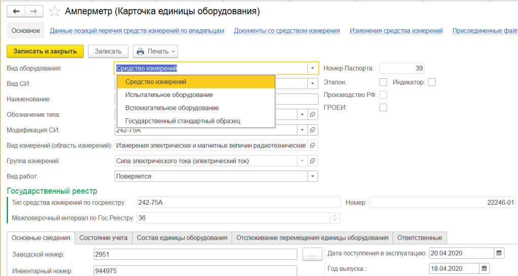 Учет метрологического оборудования