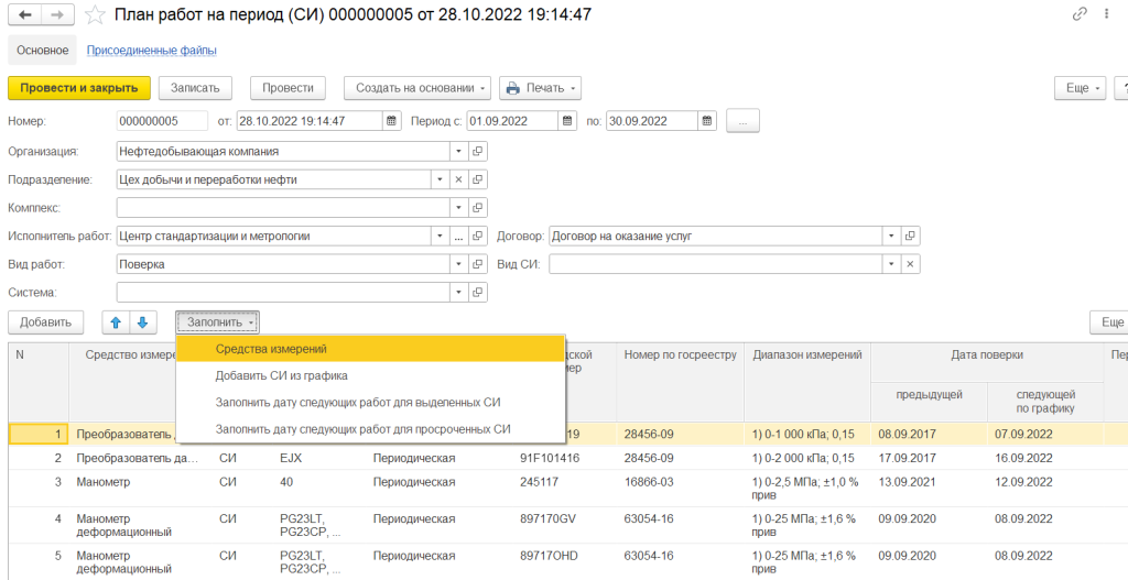 Формирование графика и регистрация технического обслуживания средств измерений