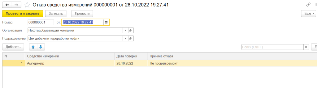 Решение позволяет при проведении поверки регистрировать отказы средств измерений: