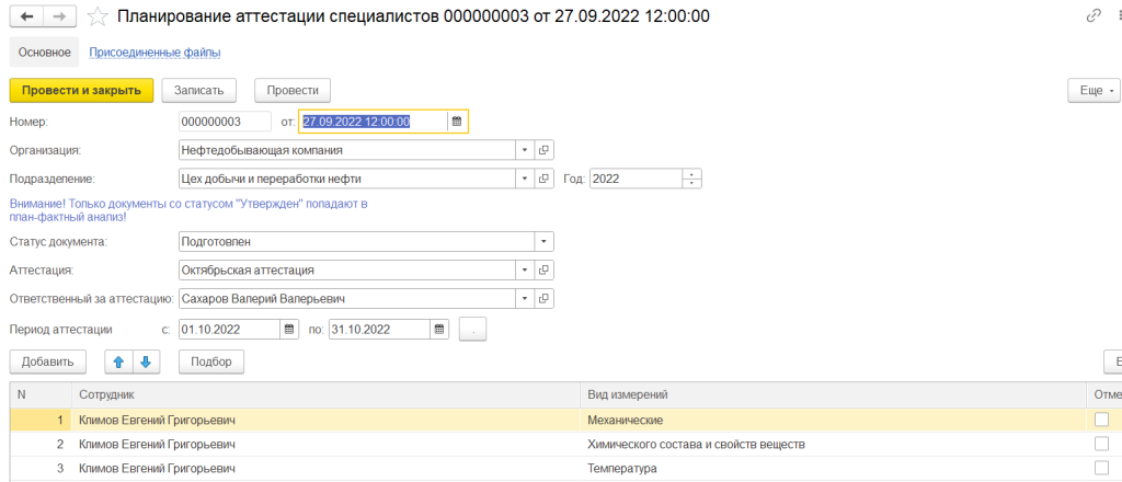 Планирование аттестации специалистов метрологической службы