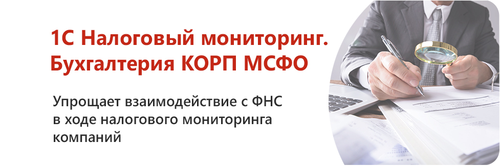 Программный продукт «1С:Налоговый мониторинг. Бухгалтерия КОРП МСФО» предназначен для ведения бухгалтерского, налогового учета и учета по МСФО, автоматизации взаимодействия между налогоплательщиком и налоговым органом в ходе налогового мониторинга предприятий, не имеющих дочерних обществ. «1С:Налоговый мониторинг. Бухгалтерия КОРП МСФО» является развитием конфигурации «Бухгалтерия КОРП МСФО».