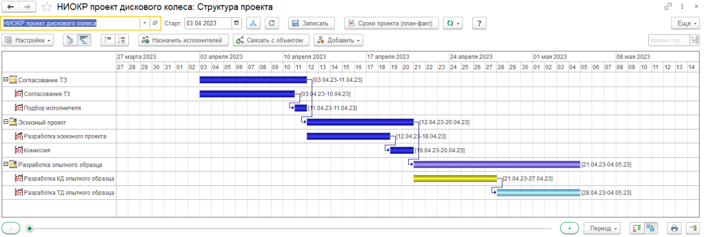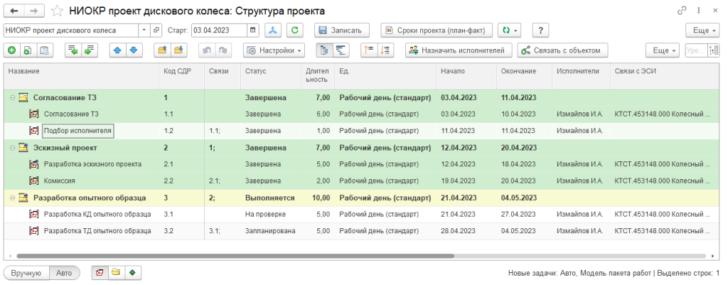 Подсистема управления пакетами работ позволяет управлять проектами разработки изделия и план-графиком проектных работ по конструкторско-технологической подготовке производства.