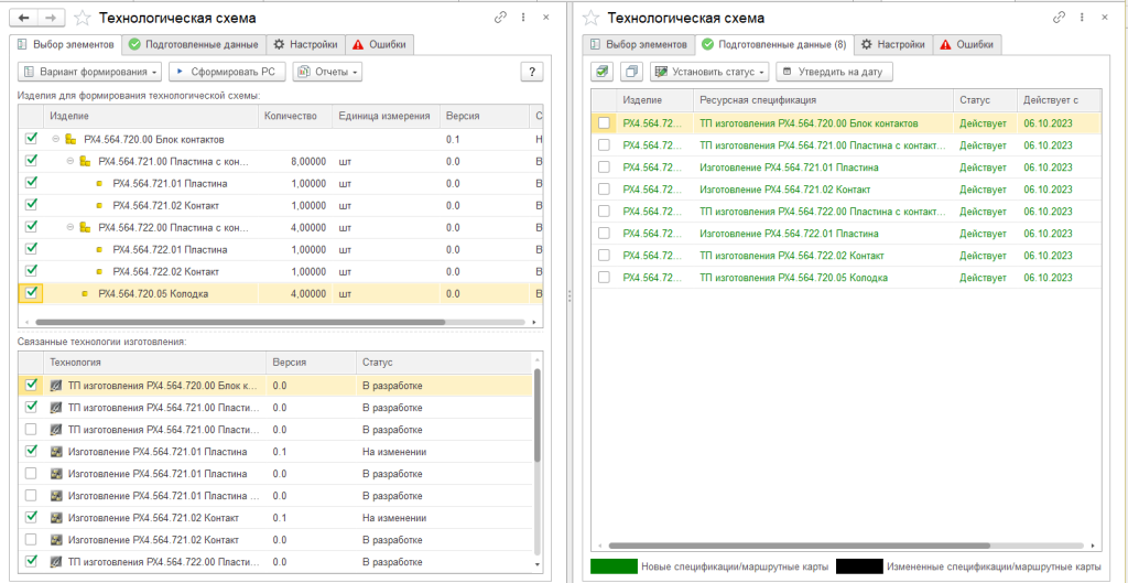 - запрет на формирование ресурсных спецификаций по несогласованным или неактуальным конструкторско-технологическим данным;