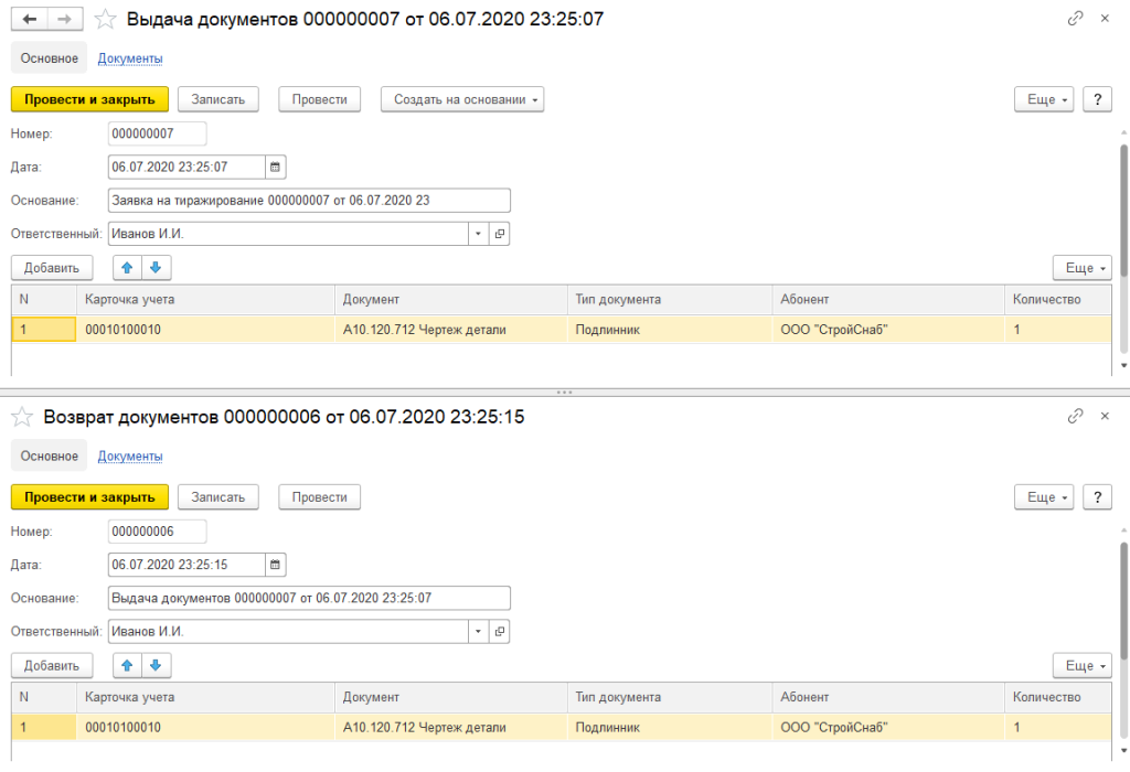Программный продукт в режиме реального времени позволяет получать информацию о наличии документов, а также об их выдаче и возврате различным абонентам, в т.ч. другим предприятиям.