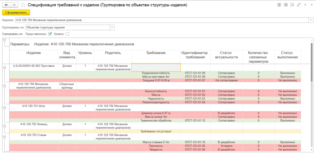 Отчет по спецификации проектных требований позволяет оперативно оценить, какие требования остались не выполнены при проектировании изделия, либо удостовериться в том, что изделие было спроектировано с учетом всех предъявляемых к нему требований.
