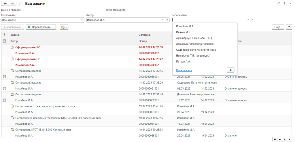 - вести контроль выполнения задач, поставленных другим пользователям;