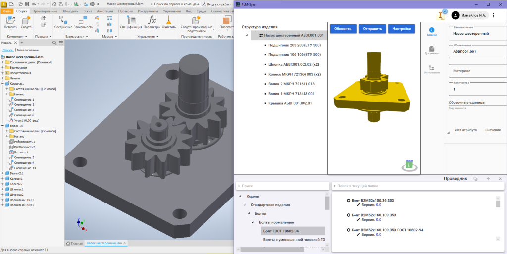 - синхронизация данных по составу изделия с «КОМПАС-3D», «T-FLEX CAD», «SolidWorks», «SolidEdge», «AutodeskInventor», получение состава и свойств изделия, отражение изменений;