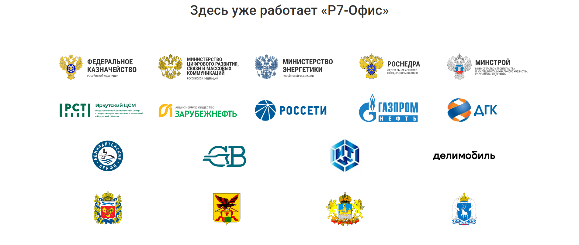 Р7-Офис – это пакет офисных программ и сервисов, которые позволяют выстраивать работу бизнес-процессов внутри компании между отделами и сотрудниками. Р7-Офис может заменить Microsoft Office и расширит возможности вашей офисной работы. Разработчиком решения «Р7-Офис» является российская компания АО «Р7» из Нижнего Новгорода. Р7-Офис входит в Единый реестр Минкомсвязи российских программ. «Р7-Офис» неоднократно становился победителем премий Cnews Award, Tadviser Prize, Приоритет в различных номинациях. |
