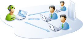 Radmin поддерживает несколько одновременных подключений к экрану удалённого ПК. Таким образом, Вы можете позволить друзьям или коллегам наблюдать Ваш экран удалённо (очень удобно для проведения конференций) или Вы можете просматривать несколько удалённых экранов или управлять несколькими компьютерами со своего ПК (очень удобно для удаленной технической поддержки или обучения).