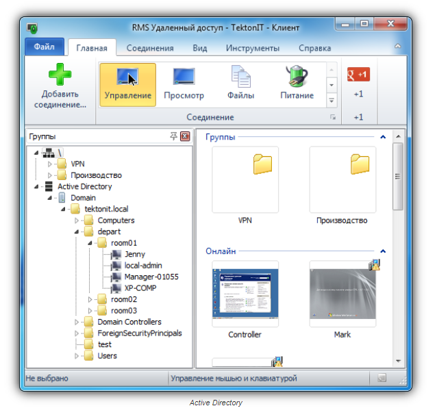Если вы используете RMS для доступа к сотням (или даже тысячам) рабочих станций, группировка соединений в иерархическую структуру — самый удобный способ организации. Вы можете создать структуру, содержащую, к примеру, список городов, в которых есть подразделения вашей организации. В свою очередь, для каждого города можно создать директорию, содержащую список подразделений, находящихся в данном городе. Структура может быть сколь угодно сложной или простой. Если Viewer находится внутри домена (или к нему явно подключен домен) — доступно все дерево Active Directory, т.е. структуру и соединения не нужно создавать вручную.